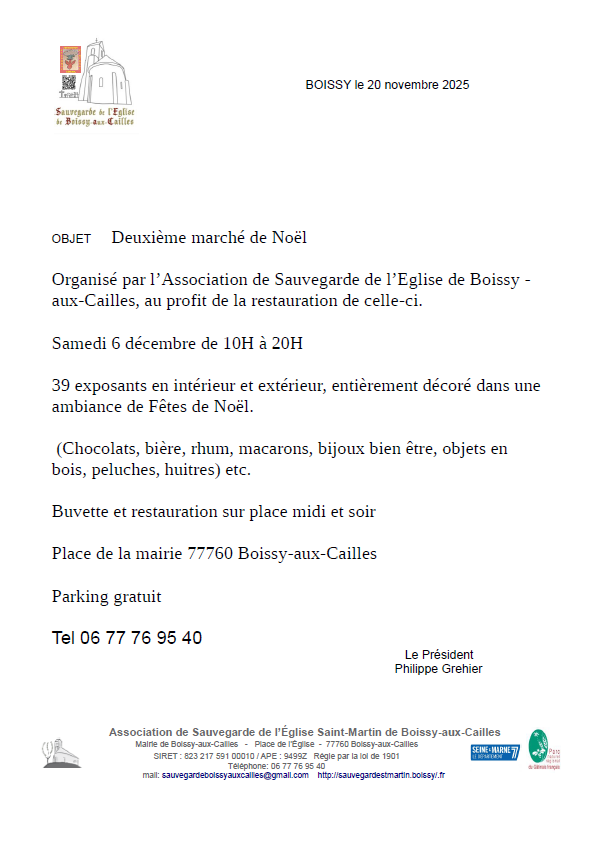 Publié le novembre 21, 2025novembre 27, 2025Promotion du Marché de Nöel à Boissy aux Cailles, le dimanche 6 décembre, jour de la St Nicolas!
